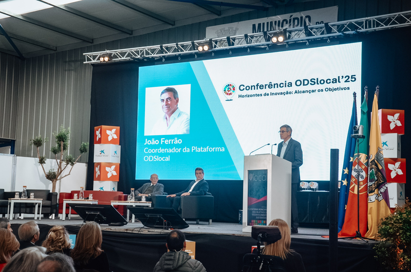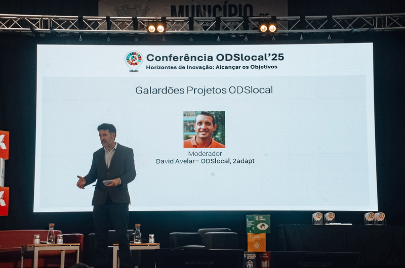 David Avelar, da 2dapt, um dos elemento do consórcio da Plataforma ODSlocal, apresentando os Galardões Projetos ODSlocal 2025