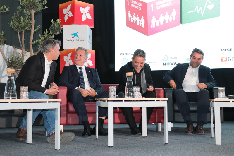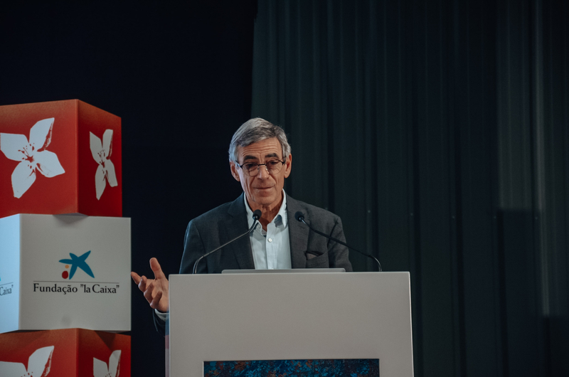 Artur Santos Silva, curador da Fundação "la Caixa“, José Pena do Amaral e Maria João Cabral (ambos Fundação ”la Caixa”) durante o discurso do Coordenador da Plataforma ODSlocal