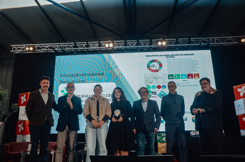 David Avelar (2adapt) acompanha os elementos representantes do Prémio de Educação Ambiental vencedor "MeteoFreixo, um projeto de adaptação climática", na presença de Francisco Teixeira, membro do Júri e Diretor do Departamento de Comunicação e Cidadania Ambiental da APA, e Armando Militão, patrocinador e Administrador Executivo da Valorsul | EGF