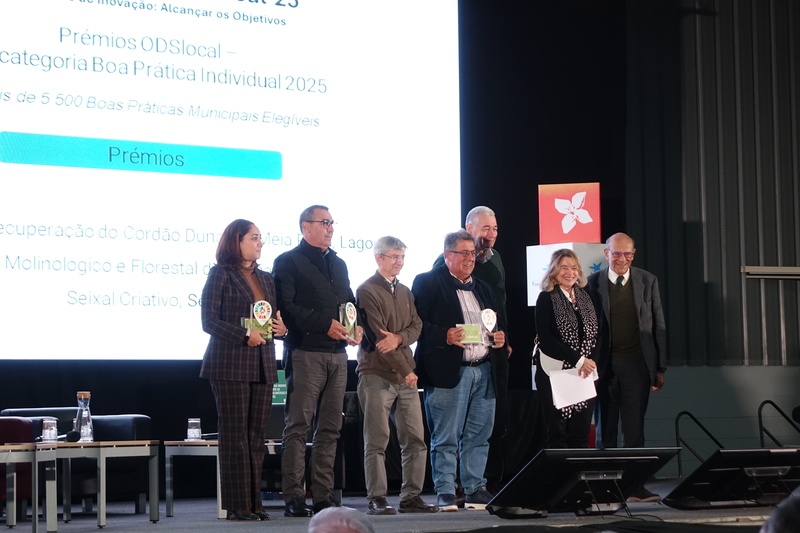 Entrega do Prémio Categoria Boa Prática Individual 2025 pelas mãos do Professor Filipe Duarte Santos, Presidente do CNADS, aos municípios de Lousada, Lagos e Seixal, na presença da moderadora Professora Luísa Schmidt (ICS-Ulisboa)